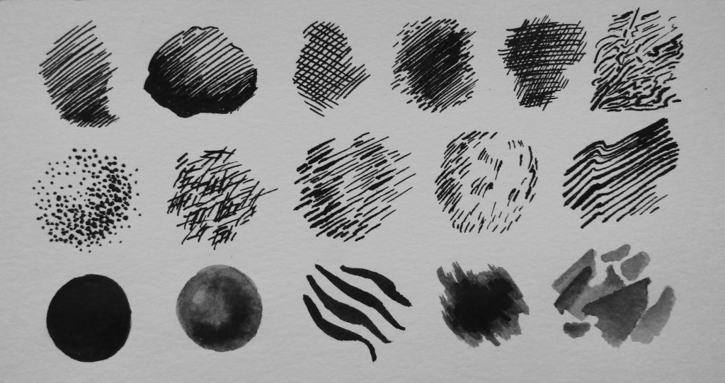 Stippling is drawing by dots or little crisp dashes. The main concept is the same – when you are adding strokes, they are making the area darker. The method is not for the faint-hearted (just imagine how long this takes to stipple almost the whole A4 sheet of paper!), but it merits attention. The dotted texture is the most realistic.