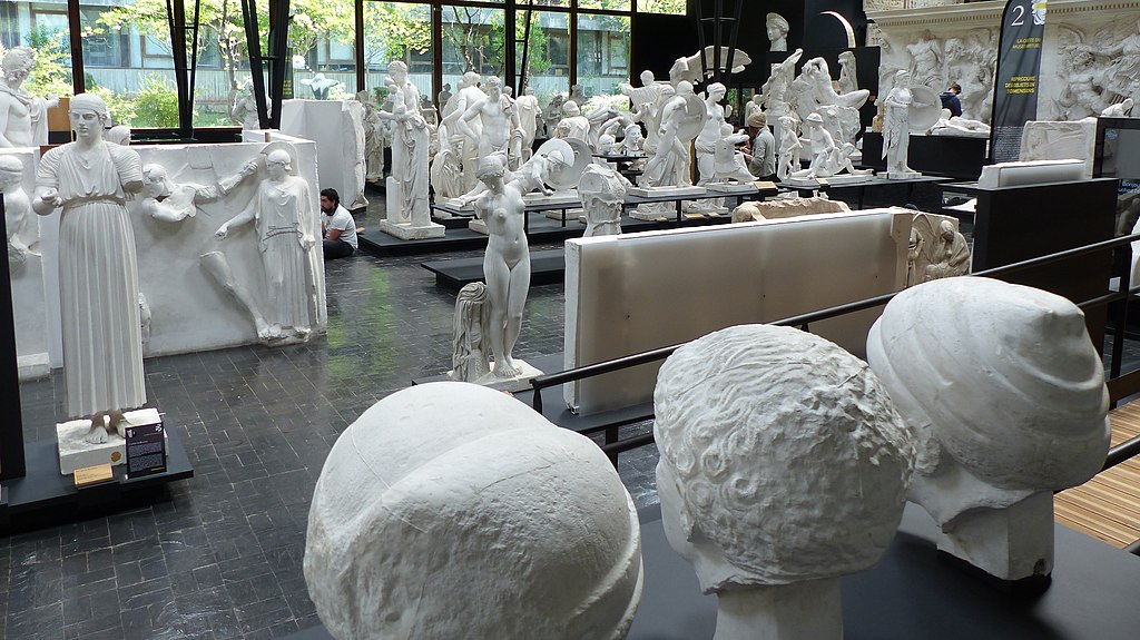 One of the survivors is the piece called the Charioteer of Delphi (Heniokhos). You can see its plaster print in the left part of the photo—pay attention to the slender figure of a youth in a tunic.